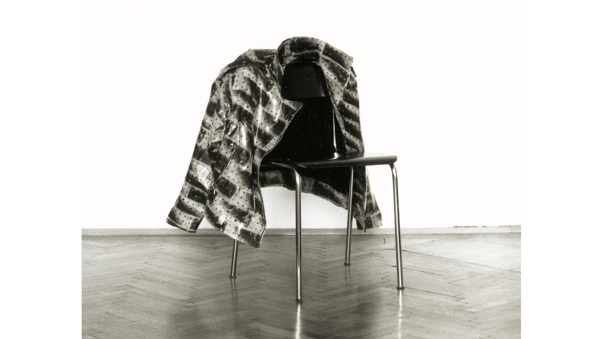 tape, leatherjacket and chair, 95 x 70 x 70 cm